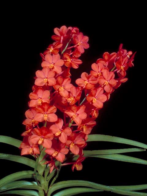 Phalaenopsis Maestro Rafael Alers 'Flaming Desire' HCC/AOS 75 points, exhibited by George Schwartz, San Bernardino, CA. AOS Award Number 19801172. OrchidPro has complete information and color photo. Published in Awards Quarterly 13(1):70 (January, 1982).