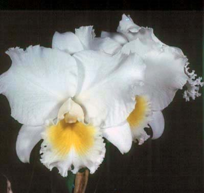 Cattleya aurantiaca 'White Magic' FCC/AOS 91 points, exhibited by Fred A. Stewart, Inc., San Gabriel, CA. AOS Award Number 19790375. OrchidPro has complete information and color photo. Published in Awards Quarterly 11(4):149 (October, 1980) with black-and-white photo. Now correctly a Guarianthe. A slightly better version of the award photo is in OrchidWiz, image #55615, attributed to Steve McNerney.