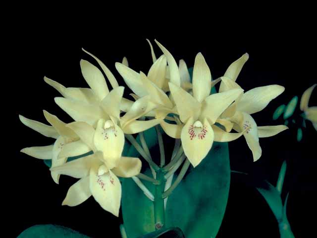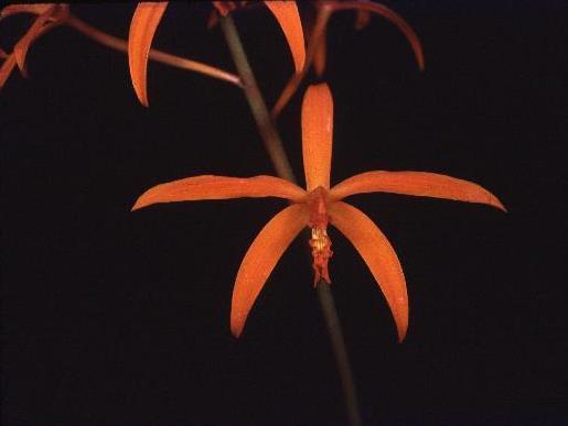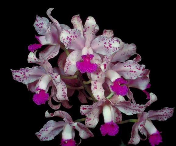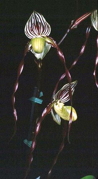 Some color photos ultimately found their way into OrchidPro and the official AOS databases that preceded it, even when they are not presently found in the Pacific South collection, but we have encountered many awards where the color photo in OrchidPro does not match the photos supposed to be the same plant from other sources, and in any case, many of the earlier color photos, in the form of digital scans from old slides whose present location is unknown, are of very bad quality. As these photos were taken, as far as we know, as part of the AOS judging program and for the use of AOS and its judging program, the implied copyright, if any, should remain with AOS, and, as an AOS affiliated society, SCOS presents them here with that understanding. For the early award photos, it is very rare to find any mention of the photographers.