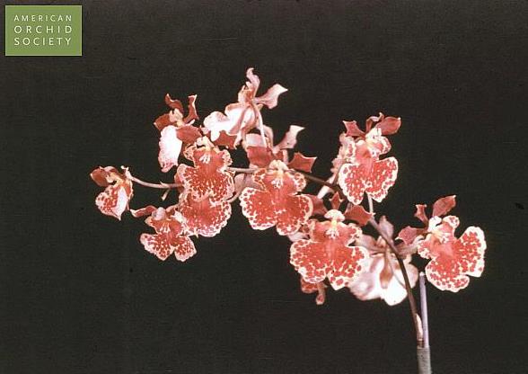 Odontioda Bogota 'Red Ripple' HCC/AOS 77 points, exhibited by Santa Barbara Orchid Estate, Santa Barbara, CA. AOS Award Number 19801247. OrchidPro has complete information and color photo. Published in Awards Quarterly 12(4):242 (October, 1981) with black-and-white photo. Now correctly Oncidium Bogotá.