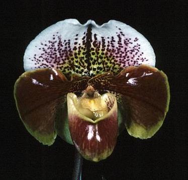 Paphiopedilum Black Diamond 'Carriage Hill' HCC/AOS 77 points, exhibited by Carriage Hill Farm, Santa Barbara, CA. AOS Award Number 19801153. OrchidPro has complete information and color photo. Published in Awards Quarterly 12(4):232 (October, 1981).