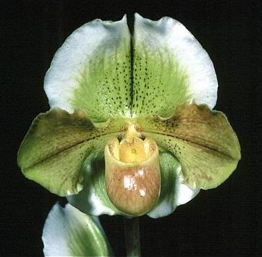 Paphiopedilum Ronez Point 'Cool Breeze' HCC/AOS 76 points, exhibited by Fred A. stewart, Inc., San Gabriel, CA. AOS Award Number 19801346. OrchidPro has complete information and color photo. Published in Awards Quarterly 13(3):196 (July, 1982).