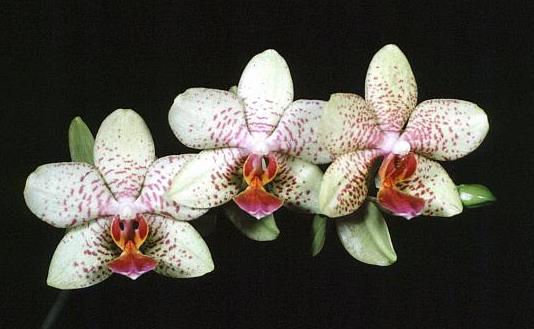 Phalaenopsis stuartiana 'Zuma Valley' HCC/AOS 76 points, exhibited by Zuma Canyon Orchids, Malibu, CA. AOS Award Number 19790037. OrchidPro has complete information and color photo. Published in Awards Quarterly 11(3):105 (July, 1980) with black-and-white photo.