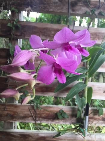 The latest chapter seems to clarify both the natural history and the taxonomy. There is at last a review of the situation based on analysis of measurements from wild-collected plants (Peter B. Adams, 2015. Dendrobium bigibbum (sect. Phalaenanthe) in Australia: Analysis of diagnostic characters, review of taxa and a new classification, Kew Bulletin, 16:1-17). For the Australian plants, Adams found no support for maintaining separate species, because the minor differences that exist overlap and intergrade. Instead, most of the Australian plants can be assigned to three varieties: Dendrobium bigibbum var. bigibbum for the plants at the top of Cape York, var. superbum for the traditional "Cooktown orchid" (the one that was formerly Den. phalaenopsis), and var. compactum for a small population at the southern end of this species' range. The remaining minority of Australian plants appear to be intergrades among these "varieties". The Indonesian plants are assigned currently to var. schroederianum (Peter B. Adams and Sheryl D. Lawson, 2016. Classification, variation and biogeography in the Dendrobium bigibbum Lindl. (section Phalaenanthe) complex, Malesian Orchid Journal, 17:7-32 — and once again, it is the cover of the journal volume, easily found on the internet, that provides the most accessible illustration of the variety schroederianum, although the article itself has dozens of photographs of wild-collected specimens, along with extensive morphometric and genetic data!) — which establishes the extent of measurable and consistent differences between this variety and superbum. This conclusion, assigning all of these "varieties" to a single species name, in any case, would seem to bring with it a much-needed stability, although at this writing, the RHS orchid registration system seems still to recognize a separate Den. phalaenopsis, possibly as a temporary expedient while the fate of the grex names involving the suppressed species is worked out.
